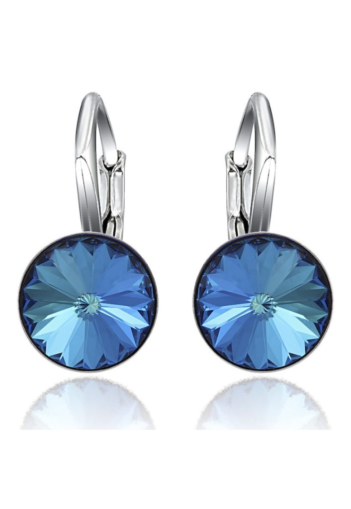 Cercei Argint 925 placat cu rodiu cu cristale Swarovski® Rivoli Leverback 8mm – Bleumarin