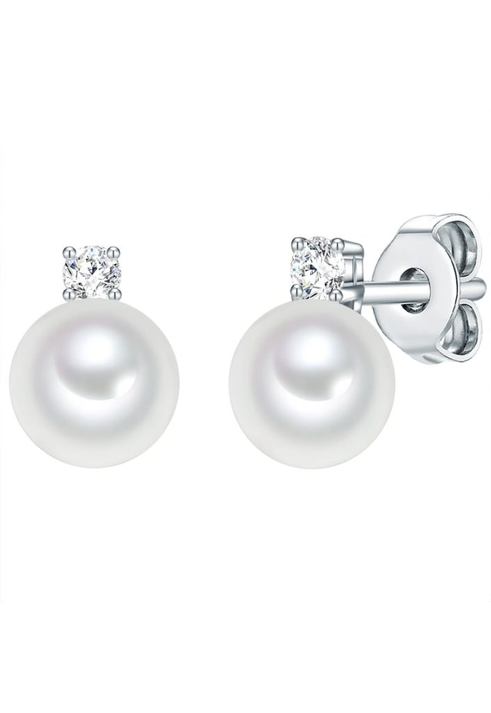 Cercei cu tija si perle – Alb