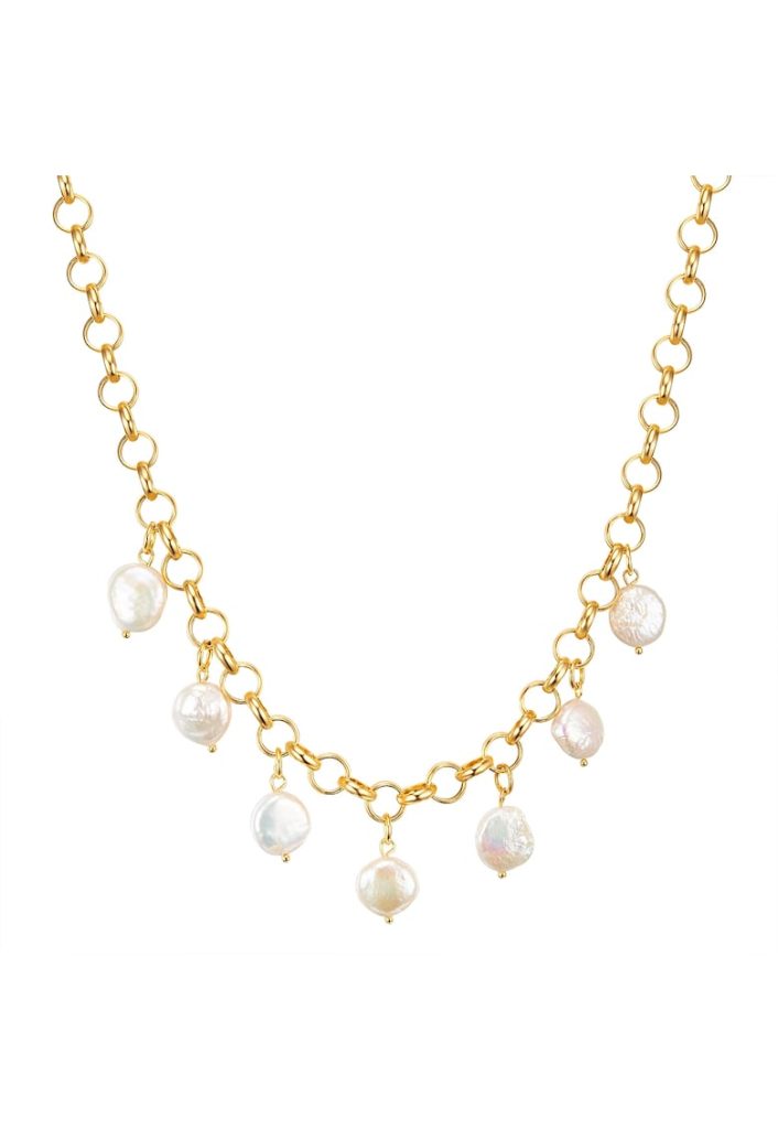 Colier placat cu aur de 14K si decorat cu perle – Auriu