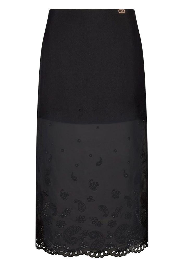 Descopera Fusta midi cu broderie – Negru de la Liu Jo. Completeaza-ti tinuta cu stil.