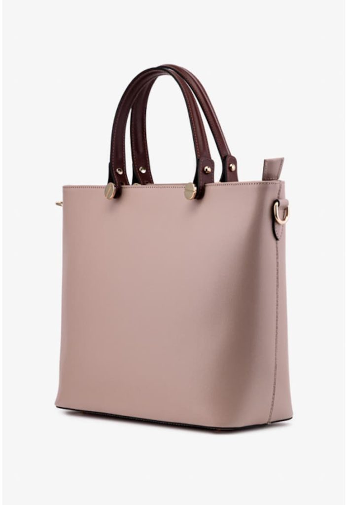 Geanta dama office bleumarin cu maro din piele naturala – Bej