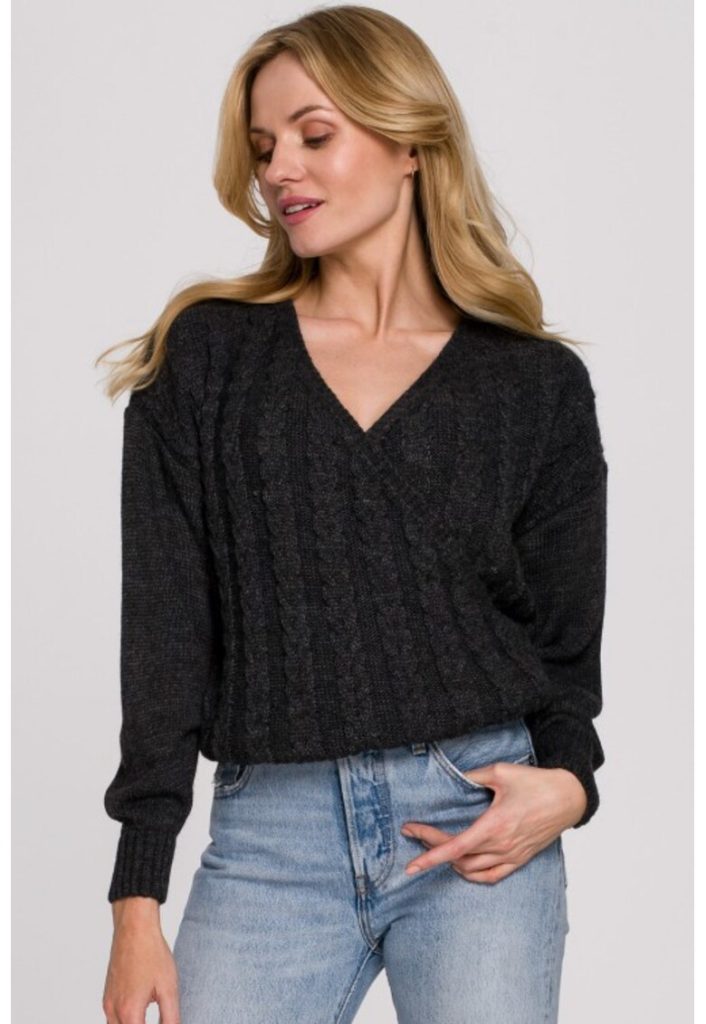 Descopera Pulover cu design cu torsade – Gri inchis de la Makover. Completeaza-ti tinuta cu stil.