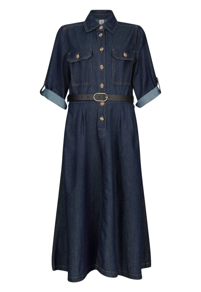 Rochie din denim cu maneci plisate si buzunare – Bleumarin