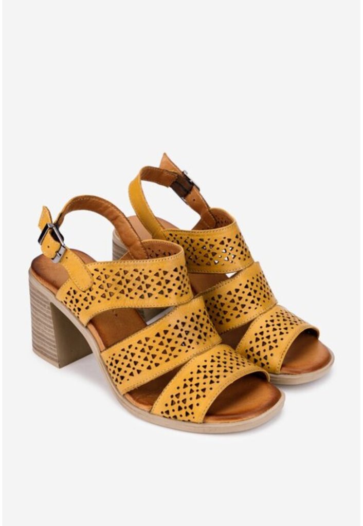 Descopera Sandale dama galben mustar din piele cu model perforat de la Dasha. O alegere perfecta pentru garderoba ta.