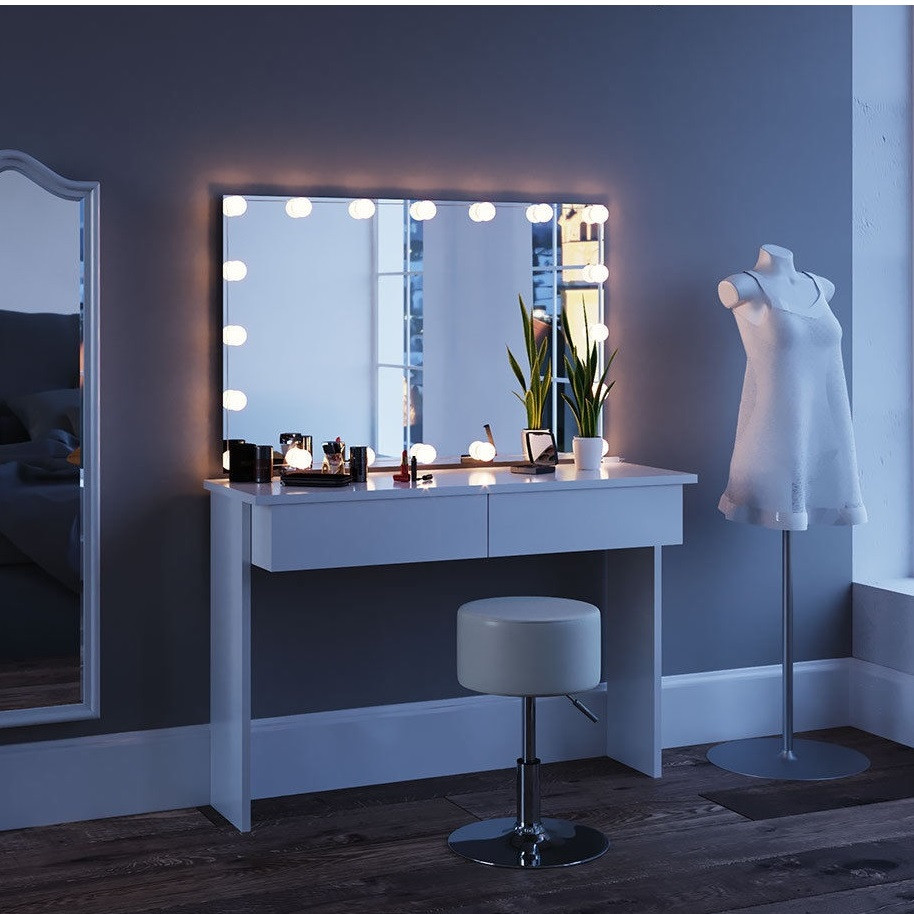 SEA252 – Set Masa alba toaleta moderna, 120 cm, cosmetica machiaj oglinda cu sau fara LED, masuta vanity cu sau fara bancuta/scaun,