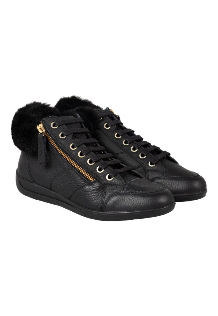 Descopera Tenisi din piele cu garnitura de blana ecologica Myria – de la Geox. Completeaza-ti tinuta cu stil.